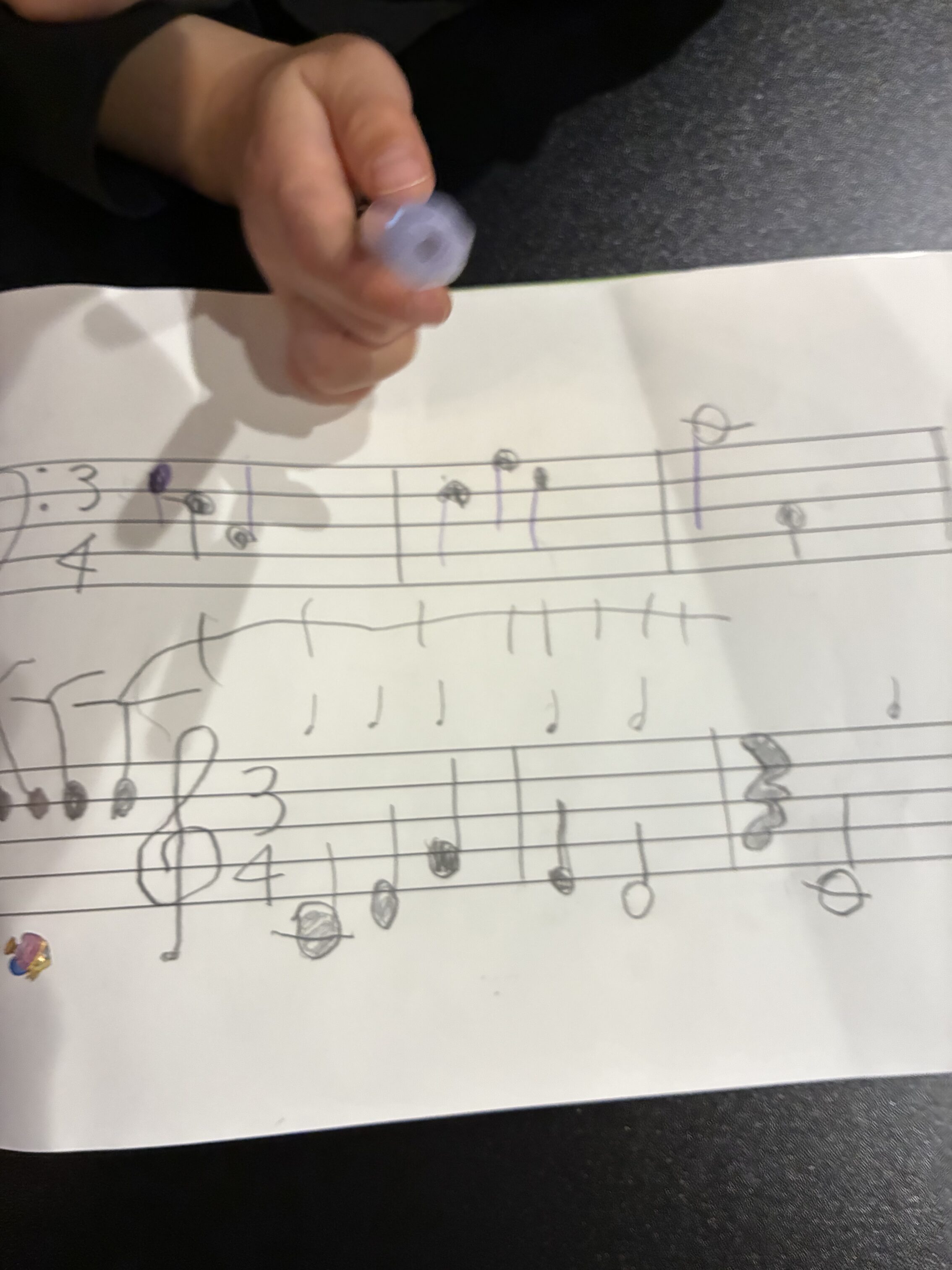 もちろん自分が書いた音を上手に弾いてくれました♪(休符記号もきちんと書けてます!)